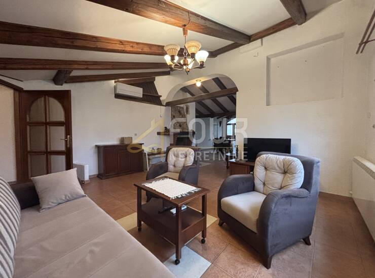 U dnevnom boravku nalazi se kamin na drva, a grijanje je osigurano i putem centralnog sustava na struju te novih klima uređaja.