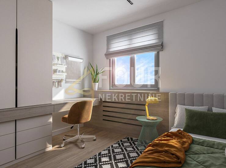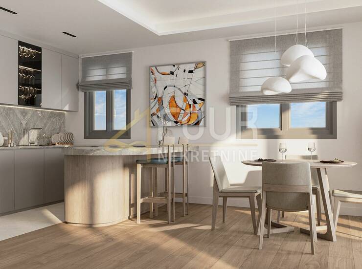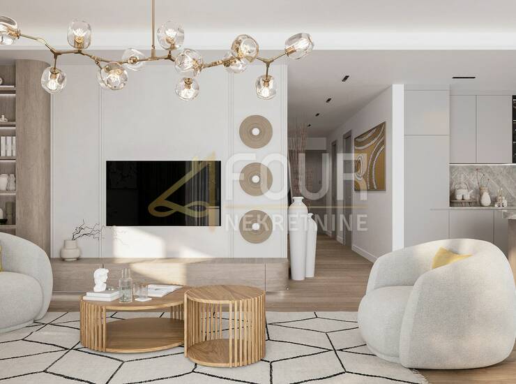 U ponudi je trosoban stan s dnevnim boravkom, ukupne površine 123.9m2, smješten u novom luksuznom stambenom kompleksu.