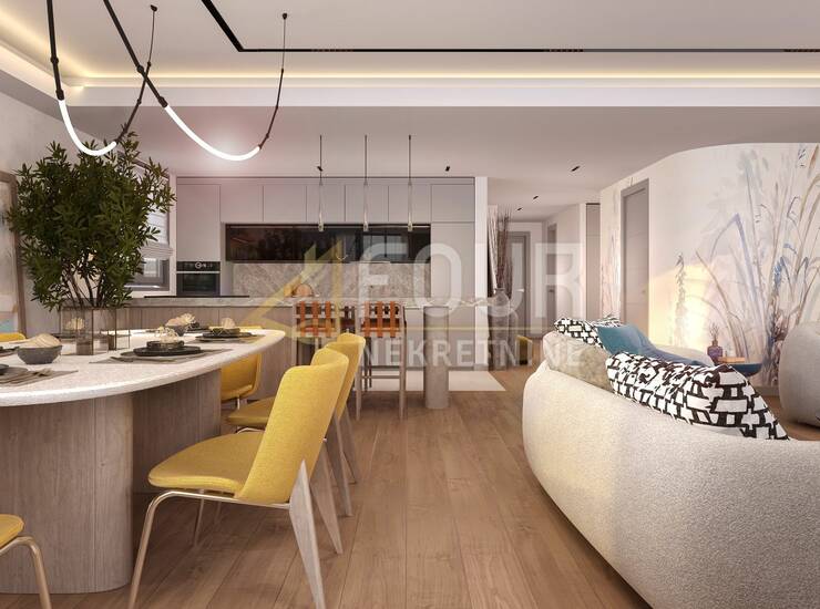 U ponudi je trosobni stan s dnevnim boravkom, ukupne površine 138.14m2, smješten u novom luksuznom stambenom kompleksu.