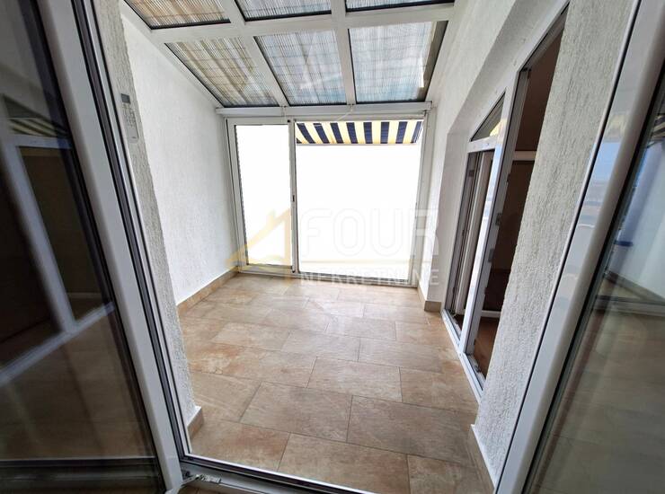 Stan je funkcionalnog rasporeda te se sastoji od jedne spavaće sobe, dnevnog boravka, kuhinje, kupaonice, ostave, hodnika i dva balkona/terase s otvorenim pogledom na more.
