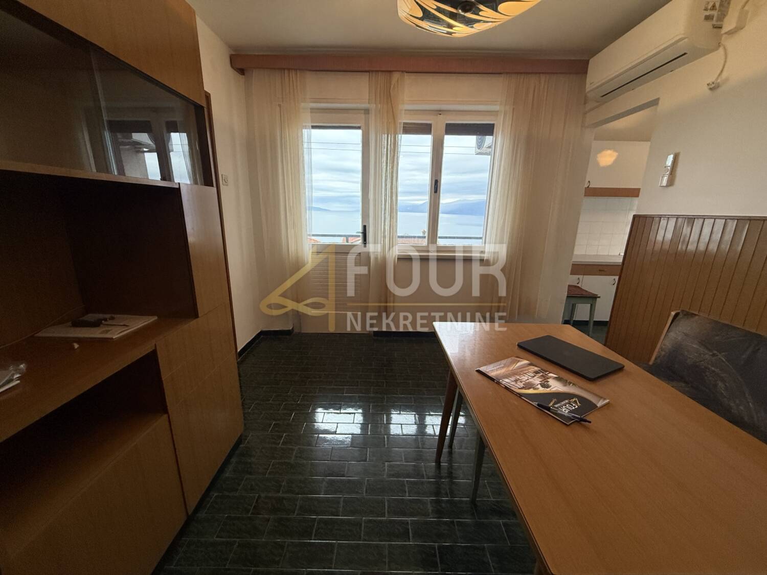 Najatraktivniji dio stana je balkon s pogledom koji se širi prema Opatiji i Učki na desnoj strani, a prema Krčkom mostu lijevo — panoramska scena koja prostoru daje poseban karakter.