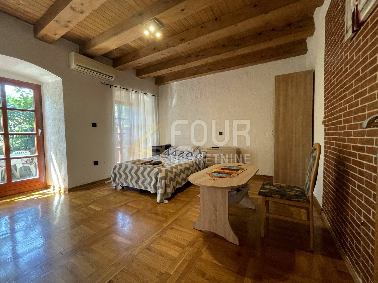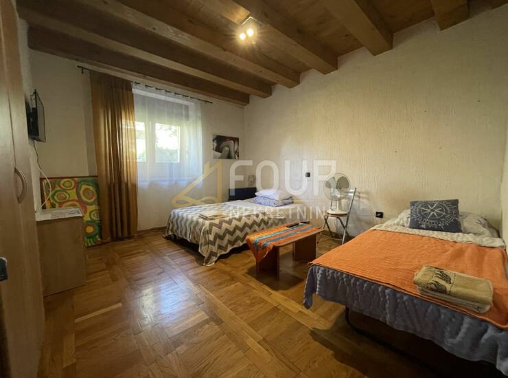 Sastoji se od hodnika, dvije spavaće sobe, kupaonice, toaleta, izbe, kuhinje i dnevnog boravka te ima okućnicu 60m2 na korištenje.
