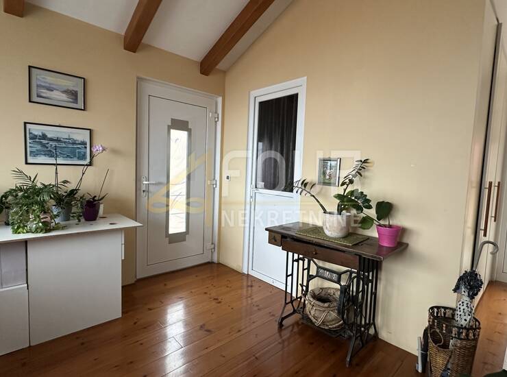 Na prvoj etaži nalazi se ulazni hodnik, dnevni boravak, kuhinja s blagovaonicom, kupaonica, jedna spavaća soba te izlaz na balkon i terasu, dok su u potkrovlju smještene četiri sobe, hodnik i dodatna kupaonica. Zahvaljujući rasporedu pogodan je za veću obitelj.