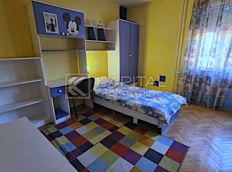 Na prodaju je stan u mirnoj i uređenoj zgradi s liftom, smješten na nižem katu. Stan se sastoji od dvije spavaće sobe, dnevnog boravka, kuhinje s blagovaonicom, kupaonice i hodnika, te ima ukupnu površinu od 68 m². Stan ima pogled na park. Prodaje se namješten. Idealno za obitelj ili kao investicija za najam. Za sve informacije nazovite 099/2196-... Prikaži broj ili 091/540 ... Prikaži broj .