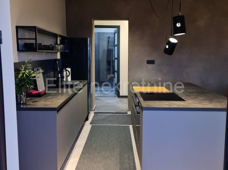 Neodoljivo lijep i stilski namješten, dizajnerski radijatori i rasvjeta, vrata skrivenih štokova, kuhinja Scavolini.