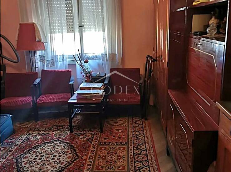 Stan se sastoji od dvije spavaće sobe, dnevnog boravka, blagovaonice s kuhinjom, prostrane kupaonice, balkona i hodnika, pružajući ugodan i praktičan raspored za obiteljski život. Ugrađena je nova vanjska PVC stolarija, a krov zgrade je renoviran. Namještaj je dostupan kupcu — stariji je, ali očuvan.