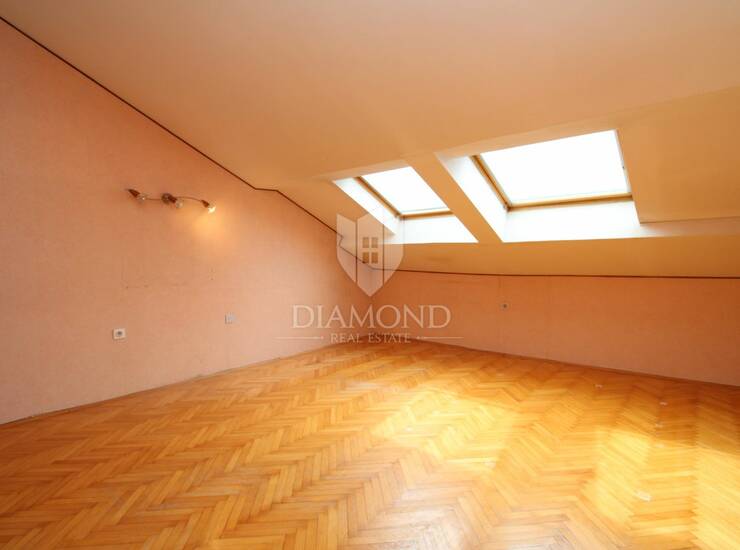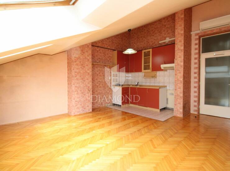 Prostor obiluje prirodnim svjetlom, a zahvaljujući poziciji u potkrovlju pruža dodatni osjećaj privatnosti i mira. Stanu pripada i drvarnica u prizemlju zgrade, što osigurava dodatni prostor za pohranu.