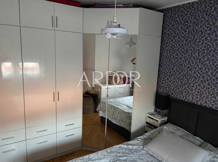 Prodaje se dvoetažni stan na Srdočima, ukupne površine 86 m², smješten na drugom katu uredne stambene zgrade. Na donjoj etaži nalazi se prostrani otvoreni prostor koji objedinjuje kuhinju, blagovaonicu i dnevni boravak s izlazom na balkon, idealan za opuštanje i uživanje na otvorenom. Na istoj etaži nalazi se i kupaonica te jedna spavaća soba. Unutarnjim stubištem dolazi se na gornju etažu – potkrovlje, gdje su smještene dvije dodatne sobe i sanitarni čvor, što ovaj stan čini savršenim za obitelj ili par koji traži više prostora i privatnosti. Stanu pripada jedno parkirno mjesto te spremište. Nekretnina se nalazi na iznimno praktičnoj lokaciji, u neposrednoj blizini škole, vrtića, trgovine, ambulante i javnog prijevoza, što osigurava udobnost i funkcionalnost svakodnevnog života.