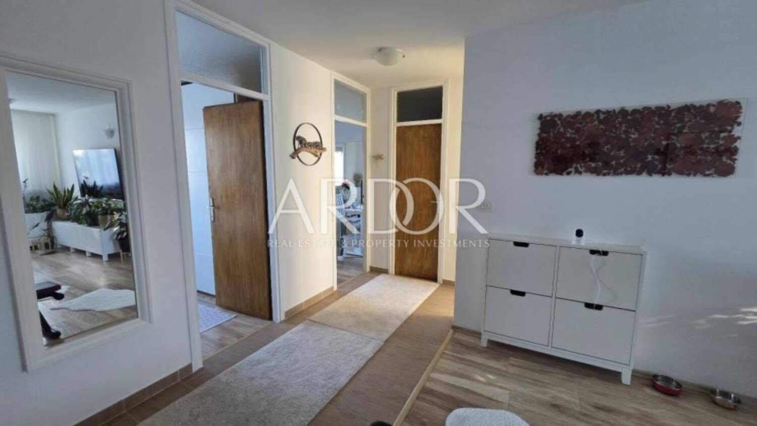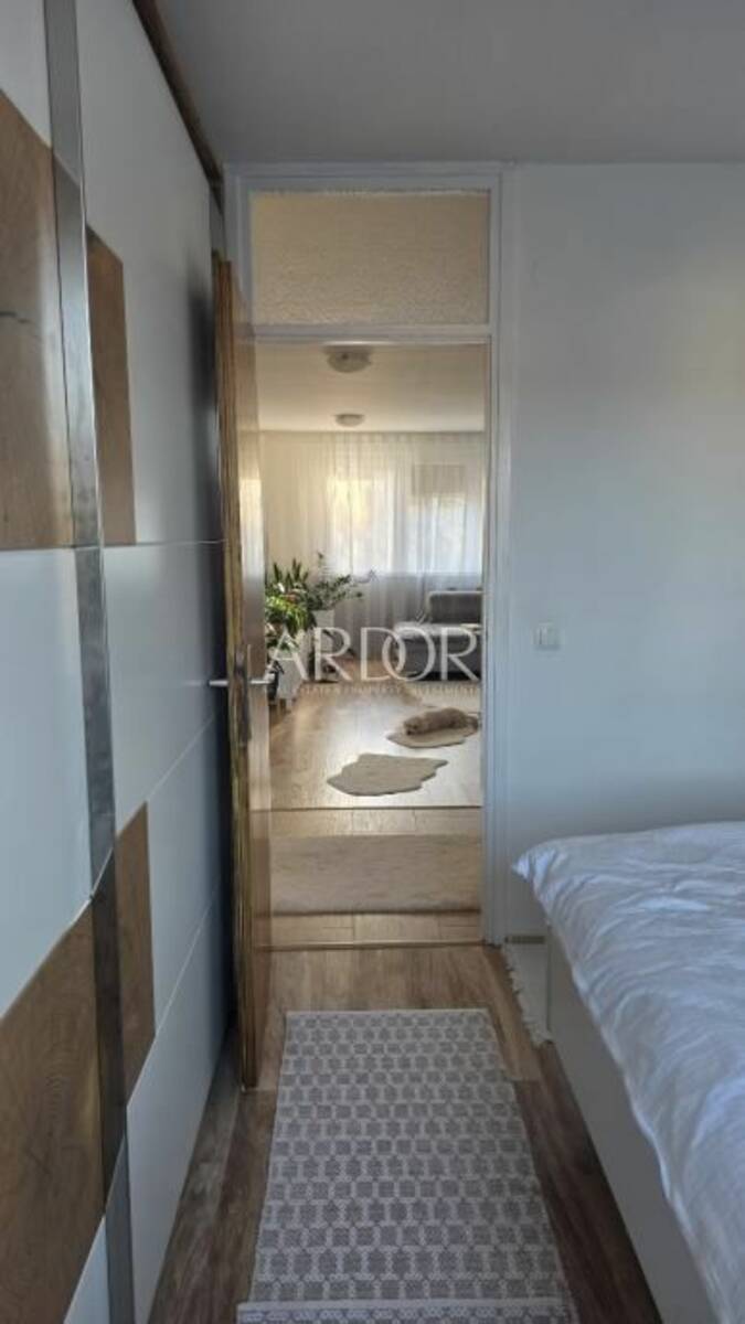 Stan se sastoji od dnevnog boravka, odvojene kuhinje s blagovaonicom i izlazom na lođu, komforne spavaće sobe, hodnika, kupaonice i dodatnog WC-a, što je posebno praktično za svakodnevni obiteljski život. Dio stana orijentiran je prema parku, što omogućuje mirniji ambijent i prozračivanje bez buke i prašine s prometnice. Stan je vrlo svijetao i ugodan čak i tijekom tmurnih dana.