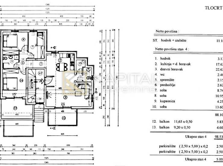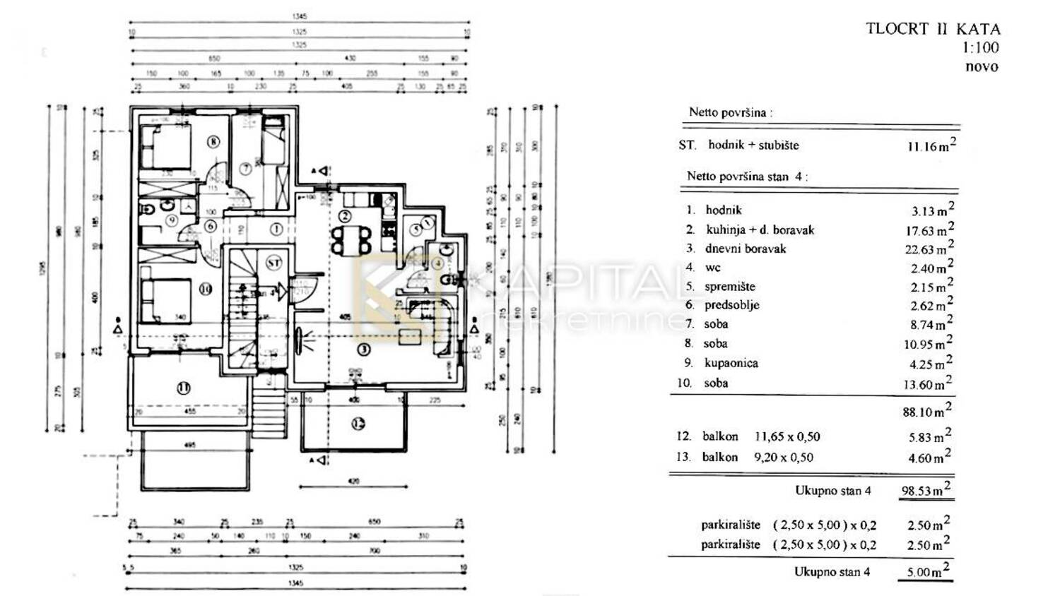 Turnić, 114.75m2, 3s+db, terasa, parking