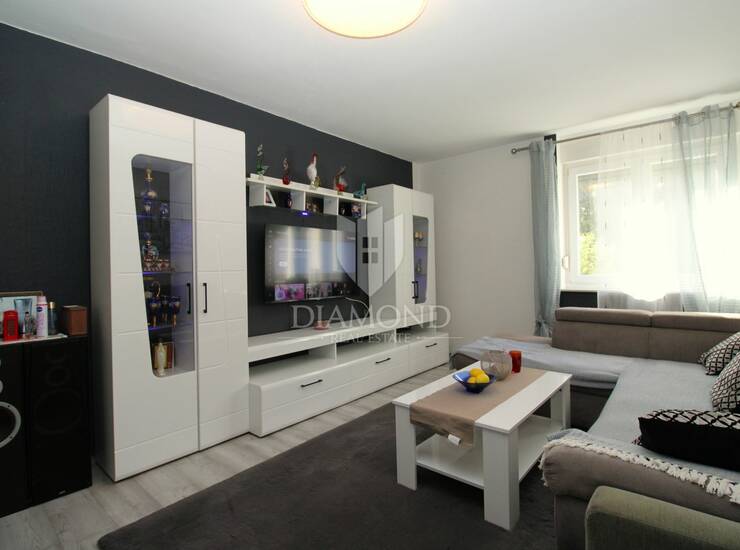Na Turniću prodajemo dvosoban stan s dnevnim boravkom, smješten u prizemlju zgrade, ukupne površine 57 m². Stan se sastoji od ulaznog hodnika, dvije sobe, prostranog dnevnog boravka, kuhinje s blagovaonicom i kupaonice. Na svakom se katu nalaze sušionice dostupne isključivo stanarima tog kata, a stanu dodatno pripada i drvarnica.