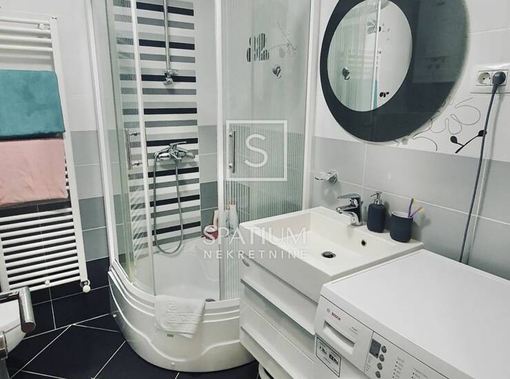 Stan je odmah useljiv, većinski adaptiran 2018. godine, a prodaje se s kompletnim namještajem. Sastoji se od spavaće sobe, dnevnog boravka, kuhinje, hodnika, kupaonice i zatvorenog balkona. U prizemlju zgrade nalaze se drvarnica i dodatna prostorija od približno 15 m², idealna za spremište, hobi prostor ili osobnu teretanu.