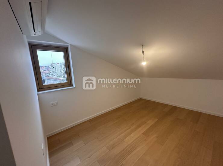 Stan je opremljen kvalitetnim i pažljivo odabranim materijalima: sustav grijanja i hlađenja putem dizalice topline, vrhunska drvo-aluminij vanjska stolarija, elegantan hrastov parket, talijanska keramika te protuprovalna ulazna vrata. U kupaonici je dodatna pogodnost podno grijanje koje osigurava dodatnu udobnost.