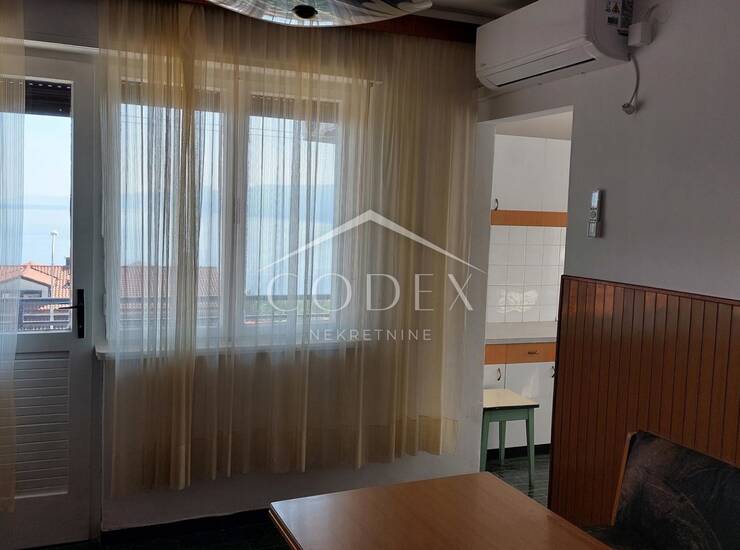 U mirnom dijelu Marčeljeve drage / Donjeg Zameta prodaje se etaža kuće površine 81 m² s prekrasnim panoramskim pogledom na more i Kvarner. Stan zauzima cijeli prvi i ujedno posljednji kat, što osigurava privatnost i mir, a zahvaljujući orijentaciji na sve četiri strane izuzetno je svijetao i prozračan. Sastoji se od kuhinje povezane s blagovaonicom i dnevnim boravkom, tri spavaće sobe, dodatne manje sobe, kupaonice, hodnika i lođe s otvorenim pogledom na more. Na korištenje su i potkrovlje te dio dvorišta.