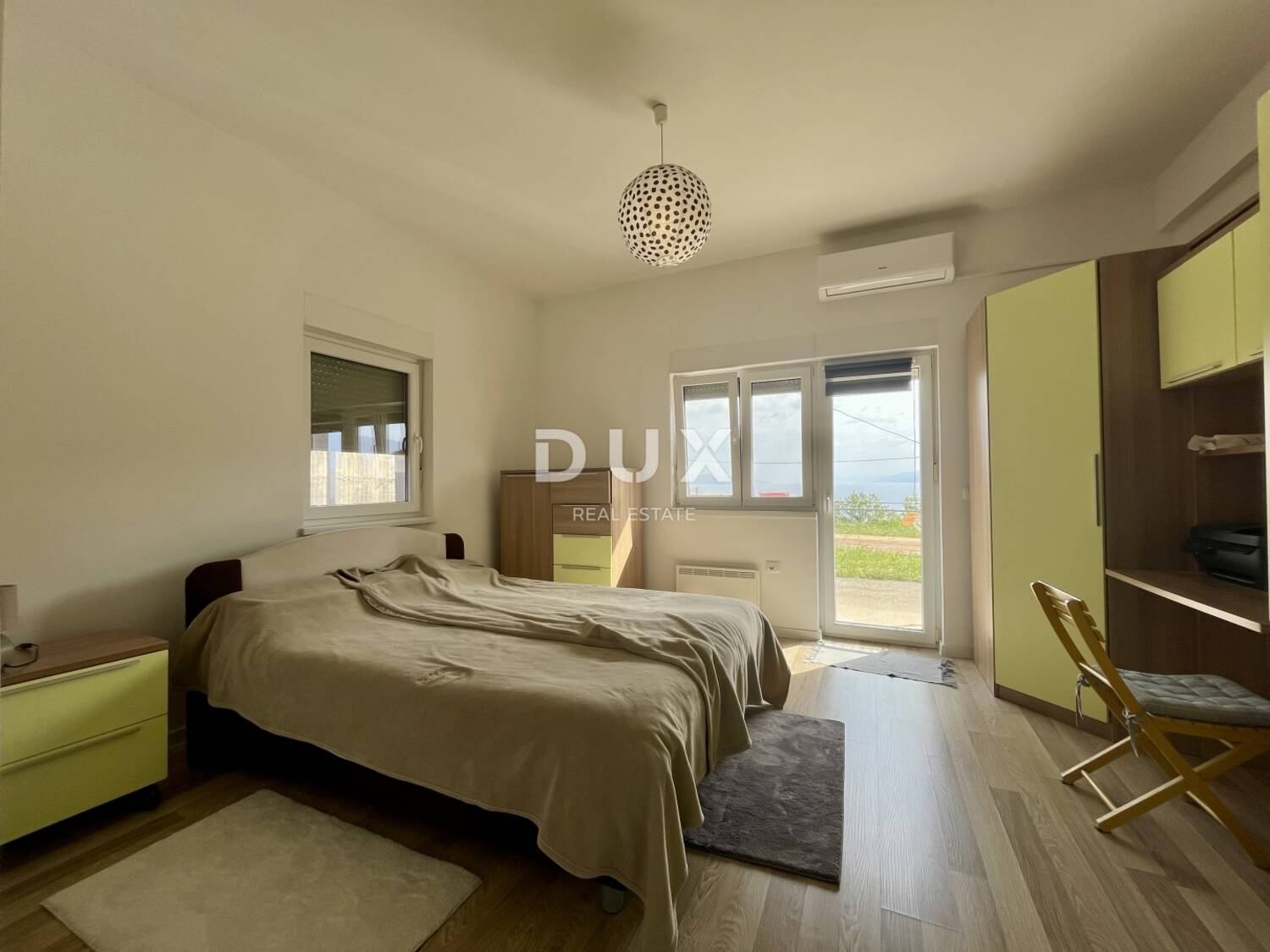 Etaža u prizemlju kuće s 3 kata. Radi se o 3S+DB kompletno uređenom stanu površine 126 m² s terasom i okućnicom od 400 m2. Stan se sastoji od predsoblja, dnevnog boravka, kuhinje s blagovaonom, dvije spavaće sobe, hodnika, dvije kupaone, dva spremišta i prostorije s posebnim ulazom koja se može pretvoriti u još jednu spavaću sobu (može se dobiti ulaz u sobu sa hodnika te čak i iz vana iz dvorišta) . Ima prilaz i čak do pet parkirnih mjesta. Pogled je prekrasan, na more i Opatiju. Lijepa i ugodna nekretnina za obitelj s djecom i za boravak vani.