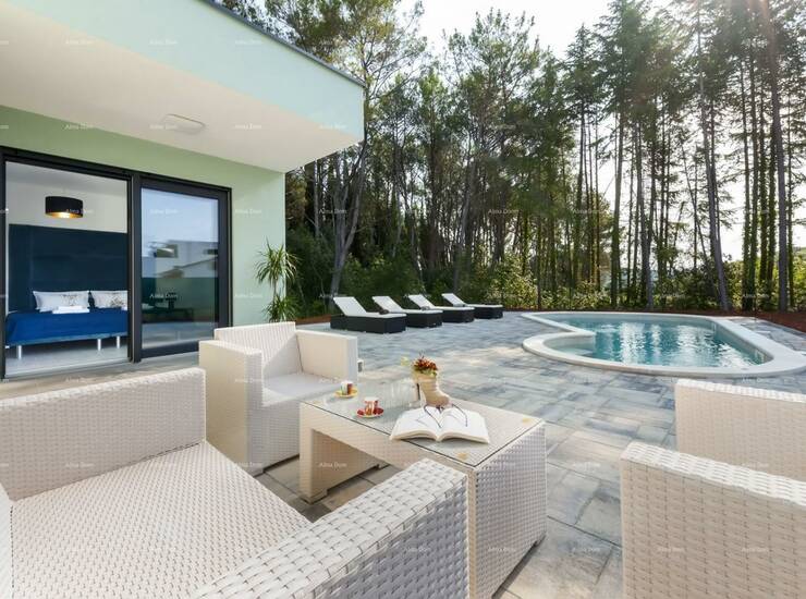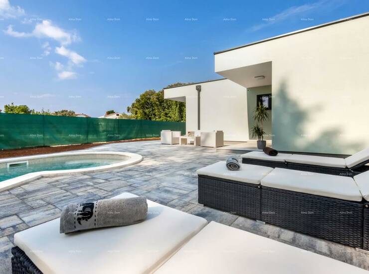 Nova, moderna jednokatnica sa privatnim bazenom i privatnim parkingom, 800 metara udaljena od plaže i samo dva i pol kilometra od centra Rovinja. Kuća se sastoji od 2. sobe s vlastitim kupaonicama, kuhinjom i dnevnim boravkom . Kuća je potpuno opremljena i trenutno se iznajmljuje kao kuća za odmor.