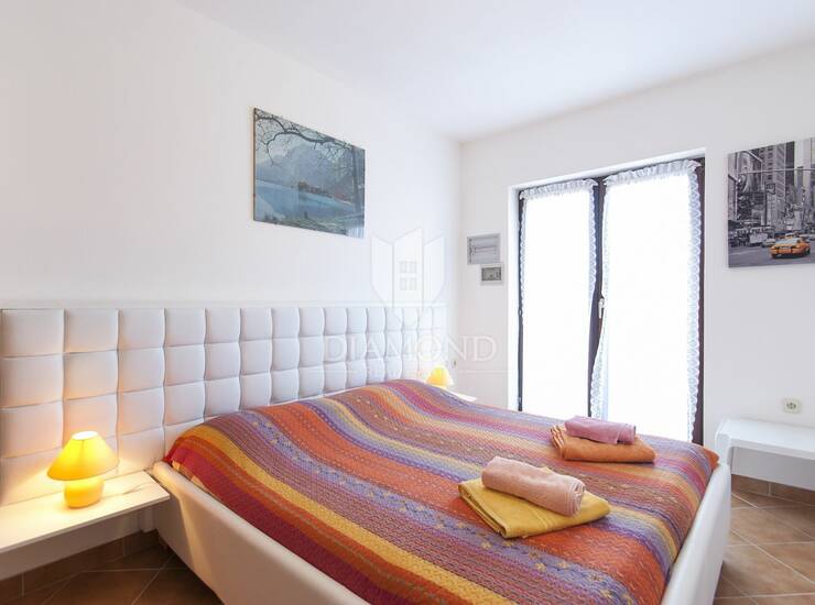 Važno je napomenuti da je kuća iznimno kvalitetne gradnje iz 80-ih, vrlo lijepo održavana, a stanovi i studiji opremljeni su laminatima i pločicama, čvrstom izolacijom i klimama. Svaki stan i studio imaju izlaz na terasu, pružajući dodatni prostor za opuštanje i uživanje u mirnom okruženju.