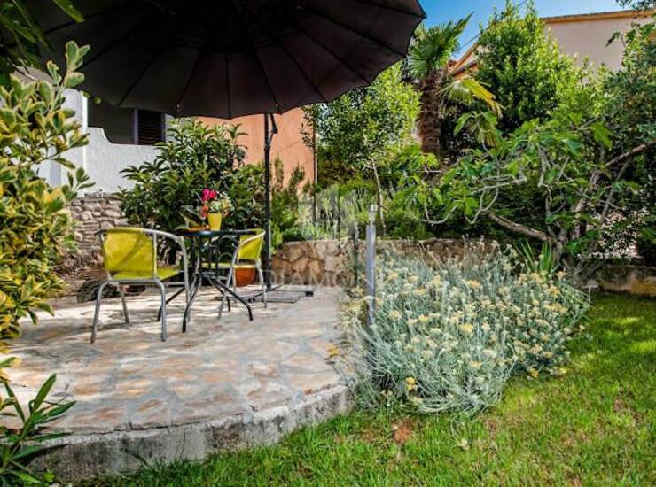 Okućnica od 575 m² obuhvaća uređeni vrt, a na raspolaganju je i parkiralište dva automobila, smješteno unutar dvorišta.