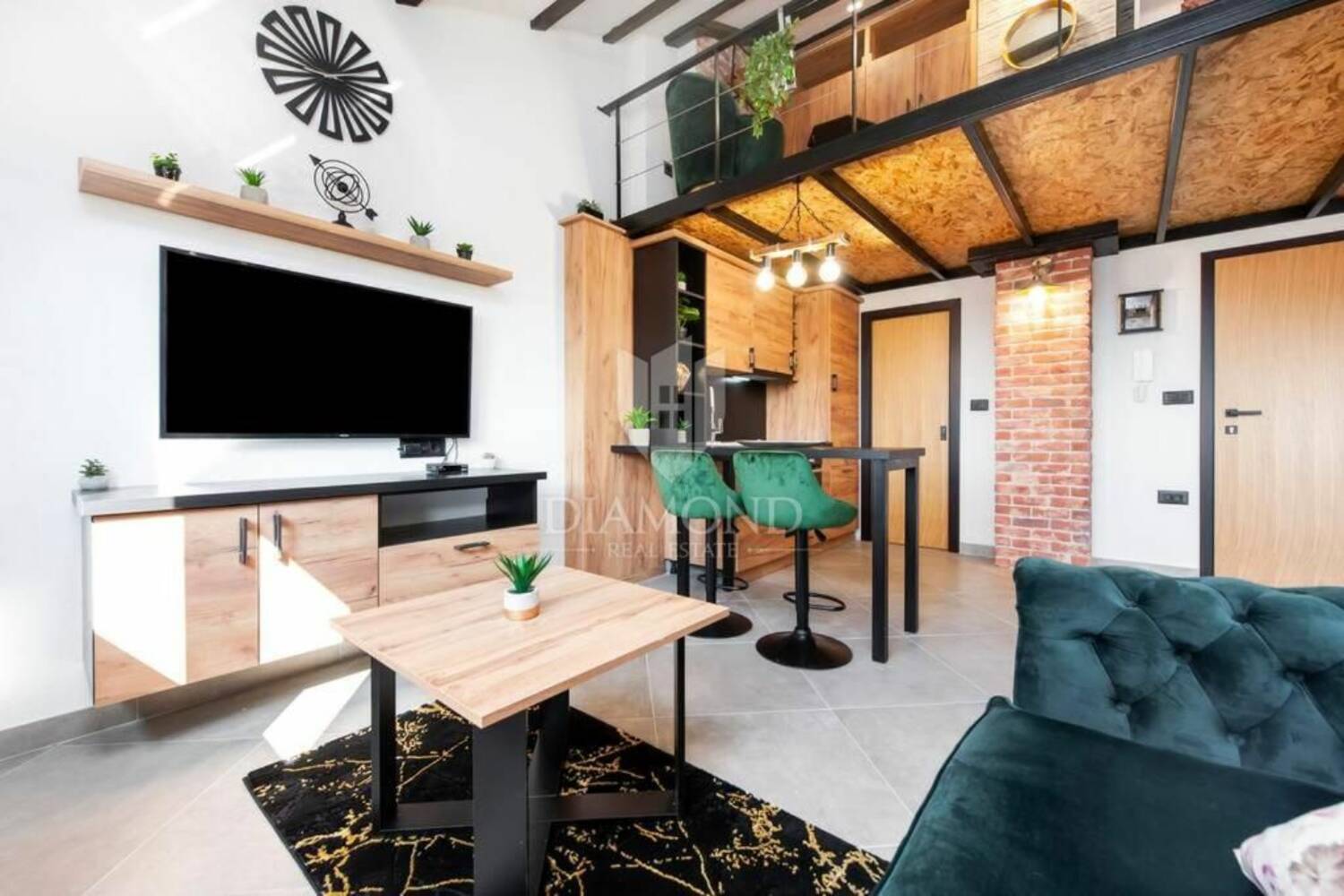 Stan ima približno 50 m² i osmišljen je vrlo funkcionalno. Sastoji se od prostranog dnevnog dijela s kuhinjom, blagovaonicom i kupaonicom, dok je galerija uređena kao spavaća soba otvorenog tipa. Posebnu vrijednost daje terasa s koje se pruža pogled na okolinu, savršeno mjesto za opuštanje.