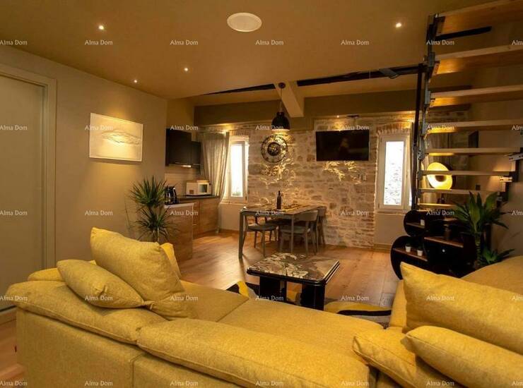 Smješten u manjoj kameno-renoviranoj zgradi s tek dvije stambene jedinice, ovaj dvoetažni stan pruža iznimnu privatnost – rijetkost u staroj gradskoj jezgri.