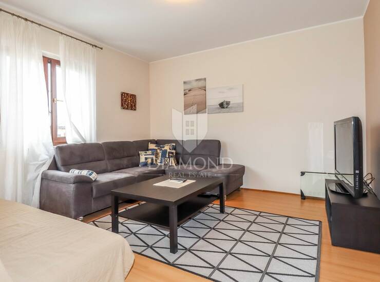 Stan se prodaje kompletno namješten i kao takav spreman je za useljenje odmah. Uz stan dolazi vlastita podrumska prostorija u podrumu zgrade površine 10 m² te vlastito parkirno mjesto ispred zgrade, što je u Rovinju iznimno pra
