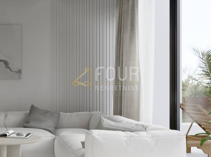 Na prodaju je moderan i luksuzan stan u prizemlju novogradnje, ukupne površine 58.32m2, s vlastitim dijelom dvorišta - 35m2.