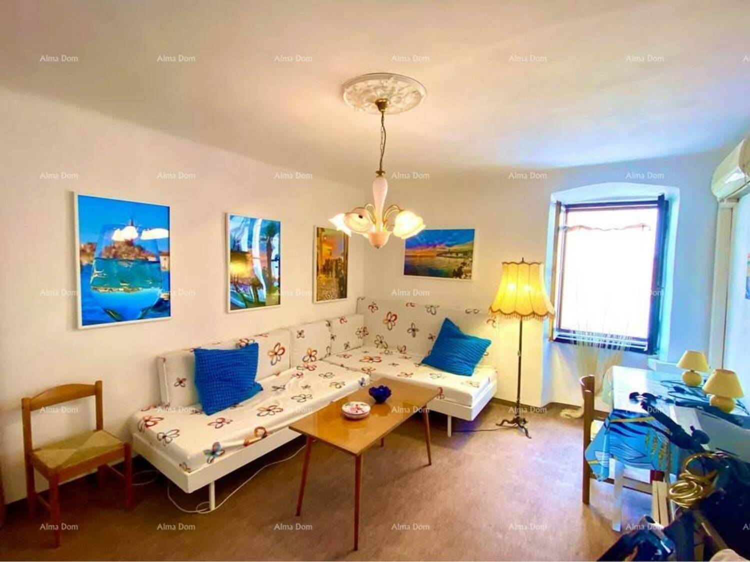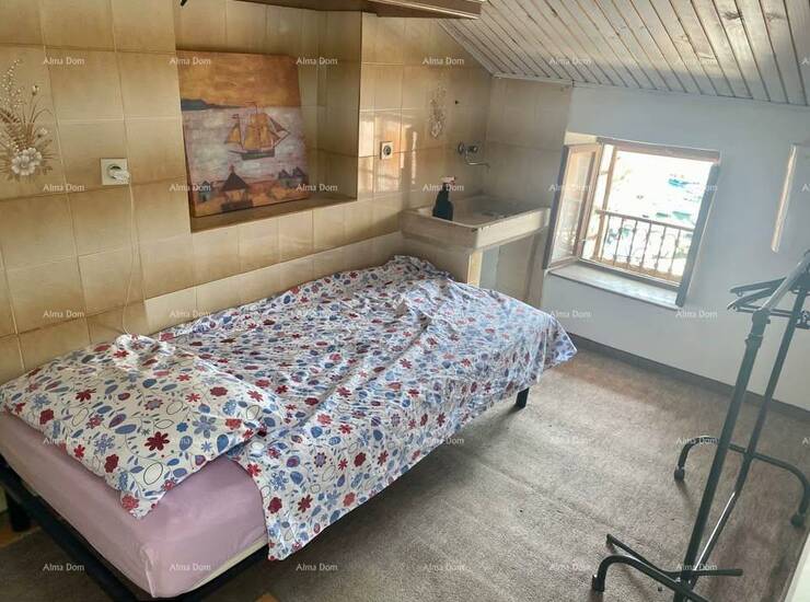 Na prodaju je stan površine 70 m², smješten u samom srcu Rovinja. Stan se proteže na dvije etaže (3. i 4. kat), s pogledom na more, luku i otok Katarinu.