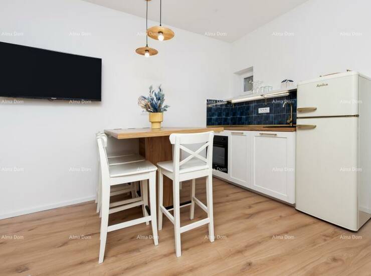 Na prodaju je šarmantan, potpuno renoviran stan smješten u samom centru starogradske jezgre Rovinja, svega nekoliko koraka od mora i poznate plaže.