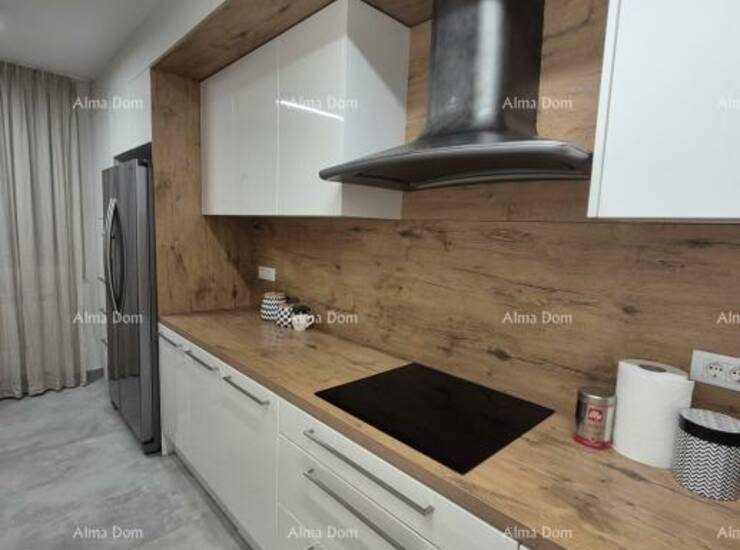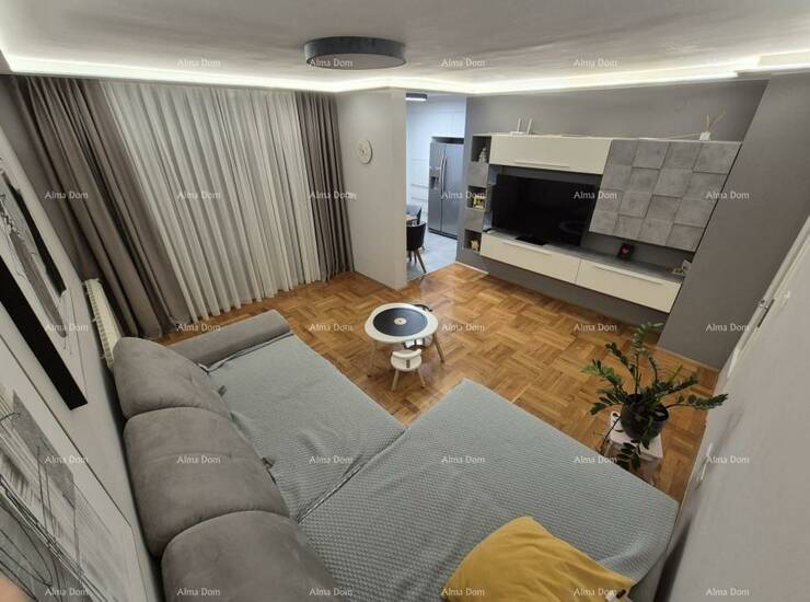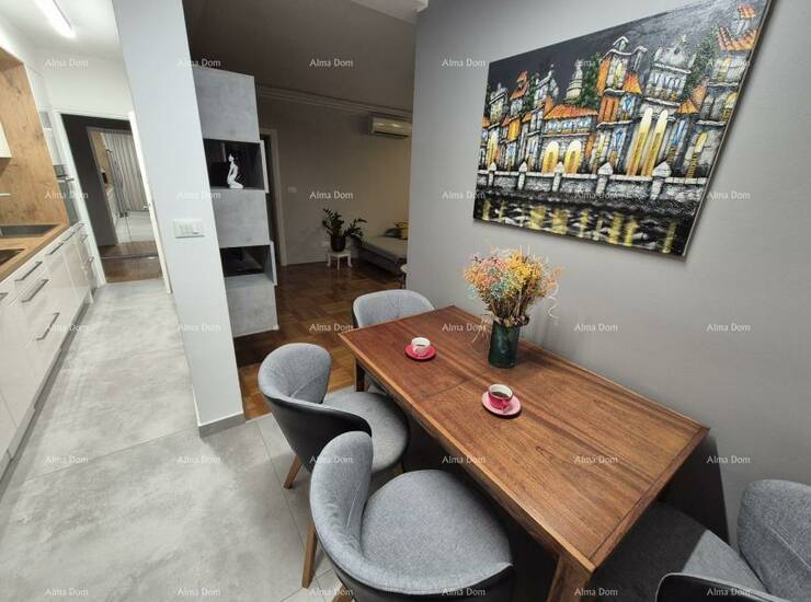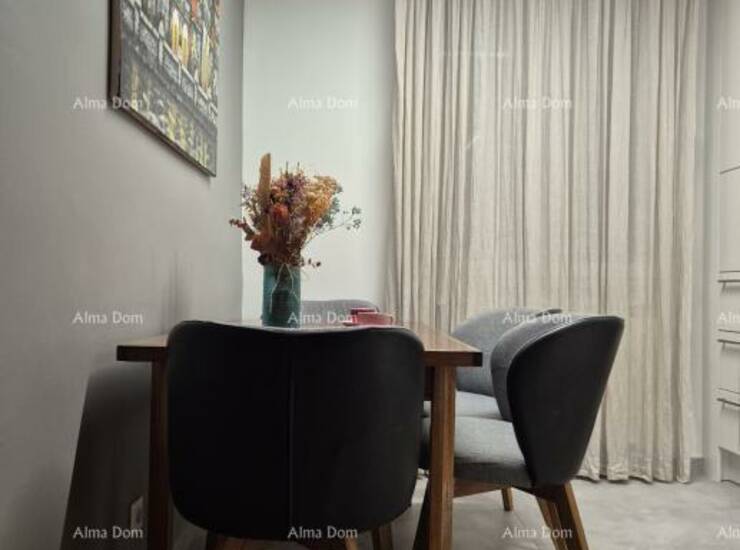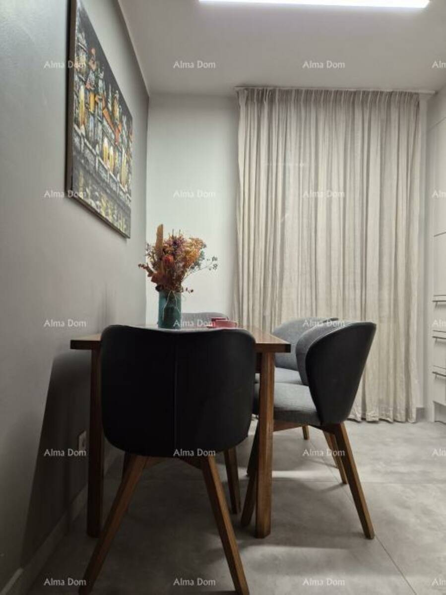 Na prodaju je vrhunski uređen stan u mirnom naselju u Rovinju, na idealnoj lokaciji — svega 500 metara od mora i centra grada, te 100 metara od škole i trgovine.