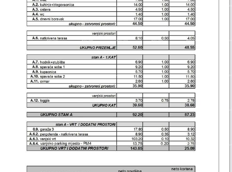 Sveukupna obračunska površina stana iznosi neto 112,31 (235.85) m2.