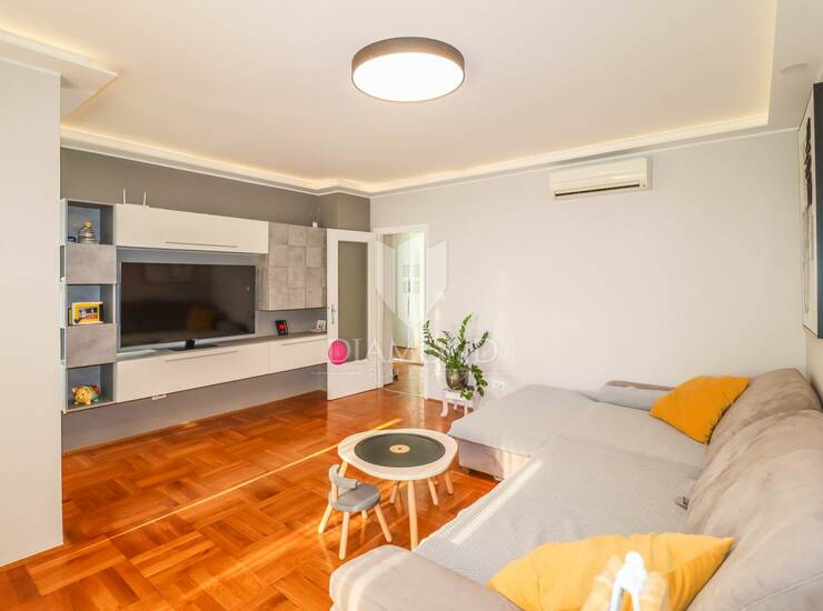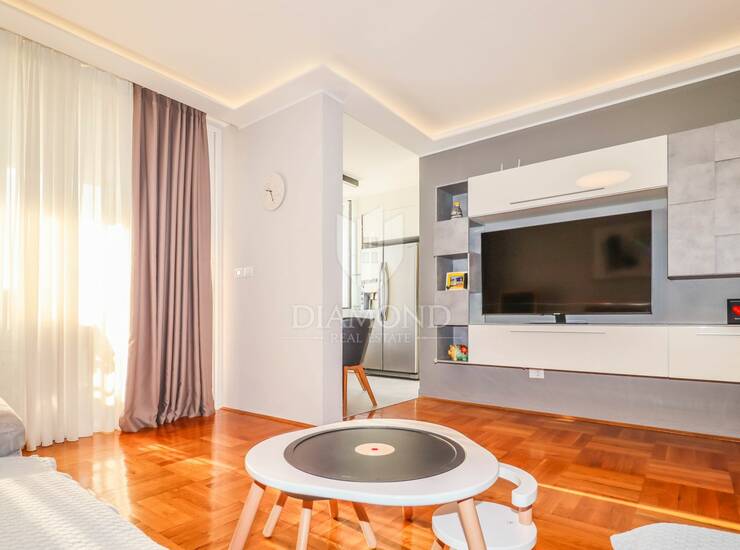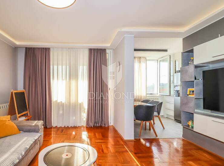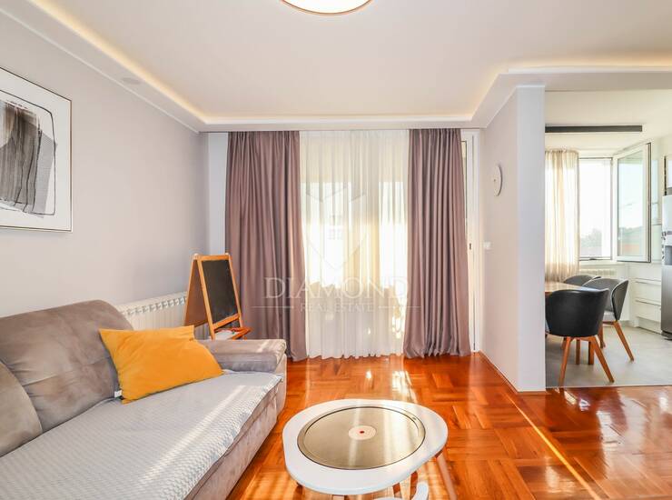 Stan je kompletno renoviran 2020. godine s naglaskom na kvalitetu izvedbe i moderan dizajn. Uređen je kvalitetnim materijalima i opremom, uključujući vrhunske kućanske uređaje, pažljivo odabranu keramiku, modernu rasvjetu te elegantno i funkcionalno rađen namještaj. Zgrada je 2024. godine energetski obnovljena novom fasadom, što dodatno osigurava komfor i bolju izolaciju.