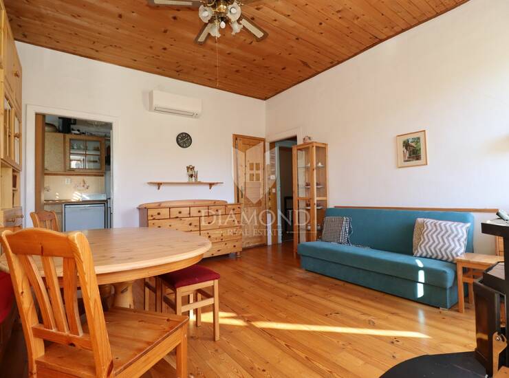 Interijer je u potpunosti uređen u drvu, s posebnim naglaskom na toplinu i autentičnost prostora – sav namještaj je ručno rađen, što nekretnini daje jedinstven karakter i posebnu atmosferu.
