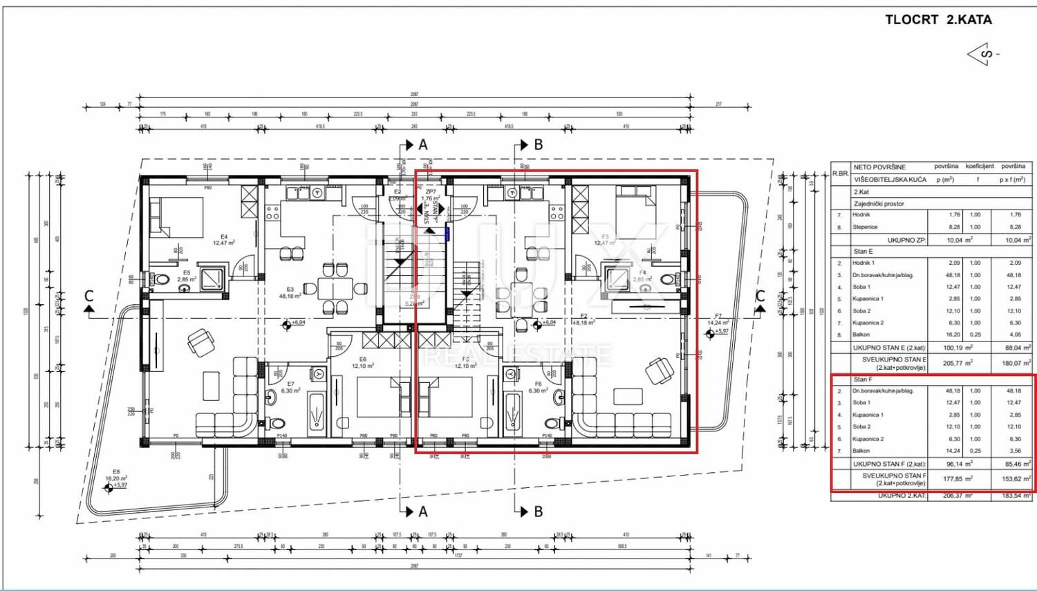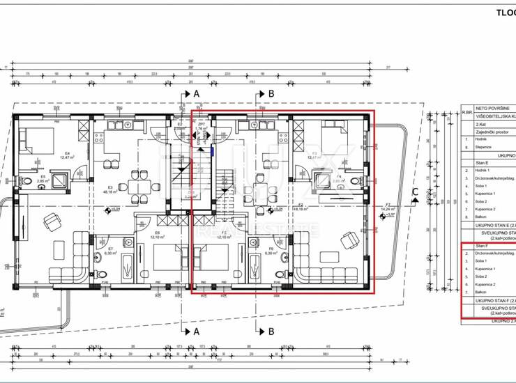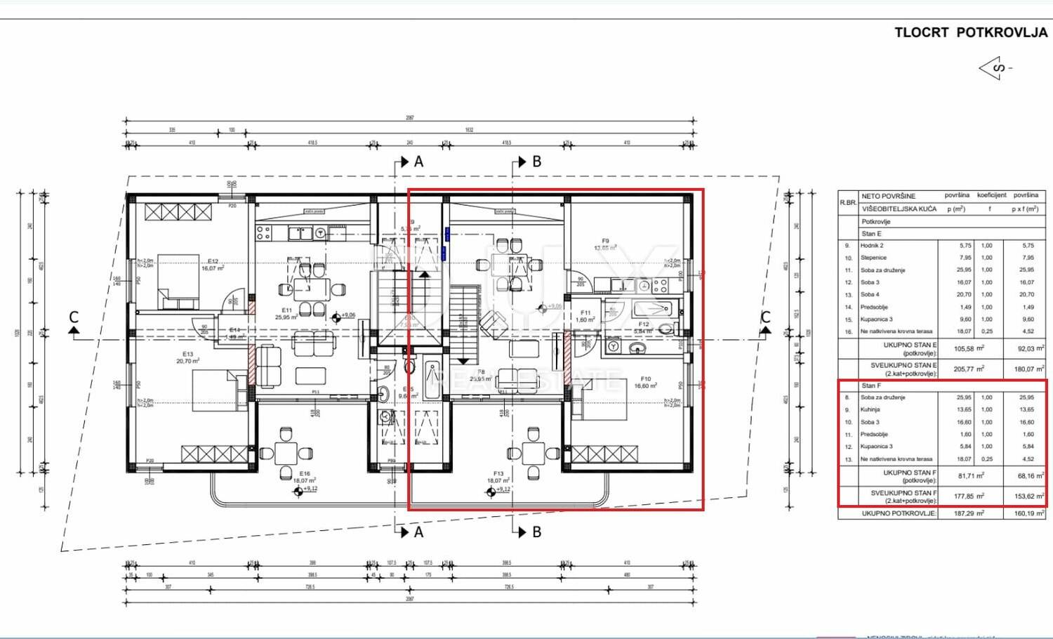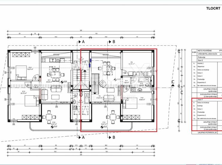 U toj zgradi na prodaju je dvoetažni stan F koji se dijelom nalazi na drugom katu, a dijelom u potkrovlju.