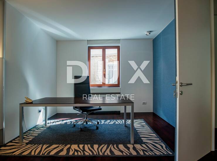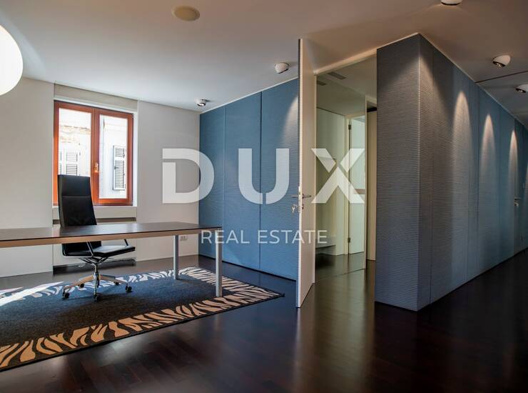Etaža se sastoji od dvije stambene jedinice koje su u naravi spojene u jedan veliki, dizajnerski namješten i uređen poslovni prostor s dva ulaza.