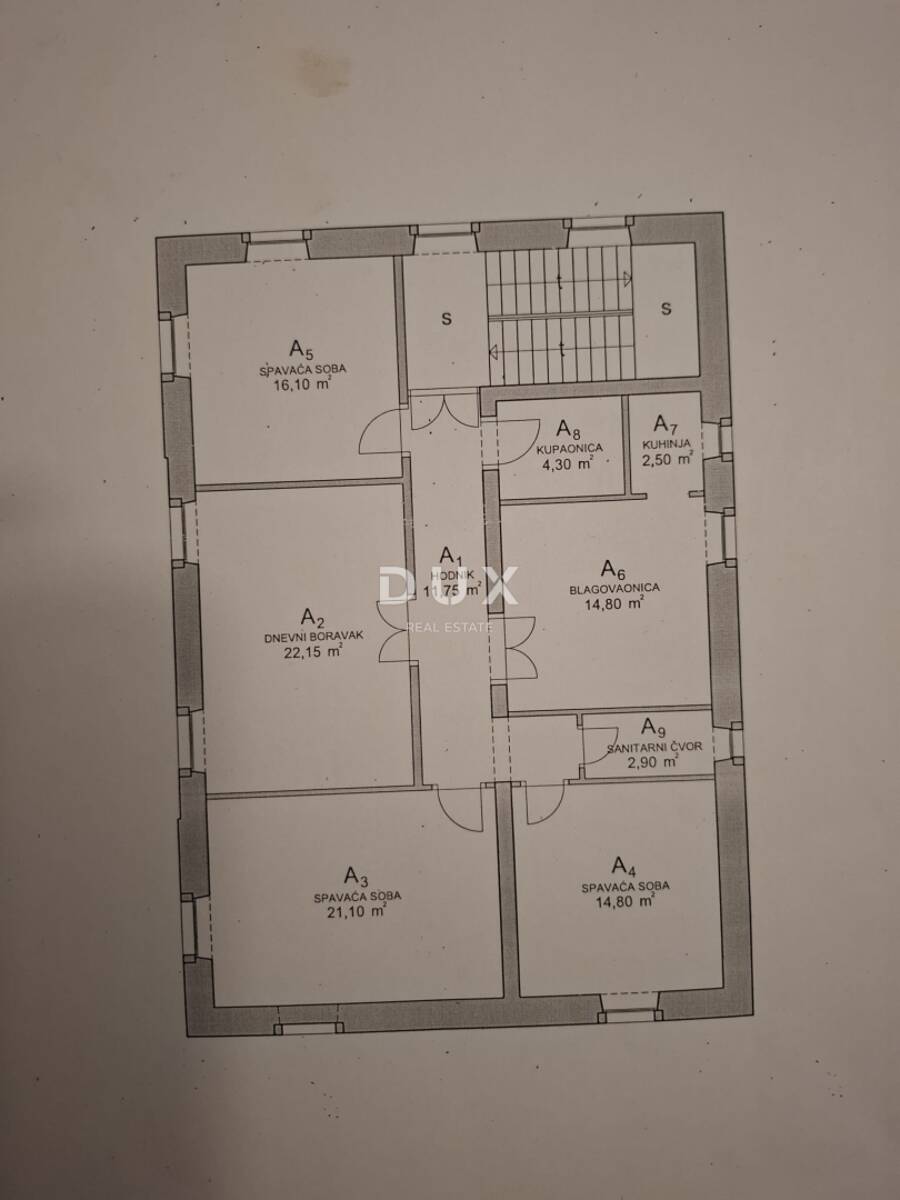 Stan površine 110 m² zauzima cijelu drugu etažu zgrade, što osigurava potpunu privatnost i osjećaj ekskluzivnosti. Prostor karakteriziraju impresivni stropovi visine do 3 metra, obilje prirodnog svjetla i klasična arhitektonska elegancija koja se danas iznimno rijetko pojavljuje na tržištu.