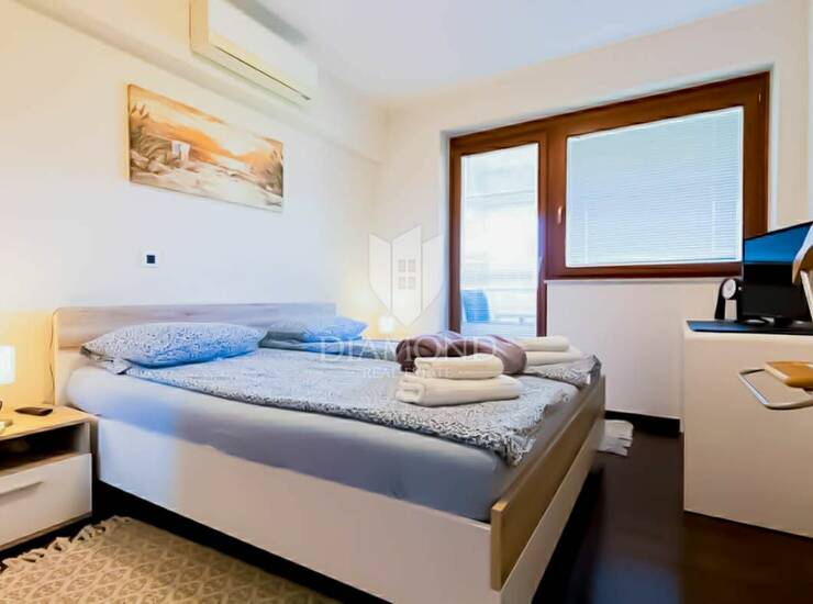 Nekretnina se prodaje potpuno namještena, što omogućuje useljenje bez dodatnih ulaganja. Grijanje i hlađenje riješeni su klimatskim jedinicama, a zbog južne orijentacije stan je tijekom cijelog dana pun prirodnog svjetla i iznimno ugodan za boravak.