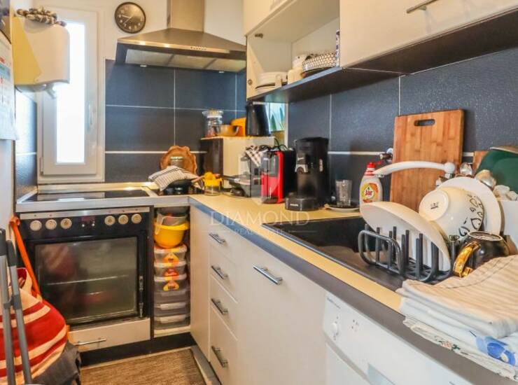 Stan se nalazi na trećem katu stambene zgrade s liftom, površine 47 m². Raspored je funkcionalan i ugodan: ulazno predsoblje vodi u kupaonicu i spavaću sobu, a zatim u svijetao dnevni boravak povezan s kuhinjom i blagovaonicom. Iz dnevnog prostora izlazi se na zatvorenu loggiu s pogledom na more — savršeno mjesto za jutarnju kavu ili opuštanje uz zalazak sunca.