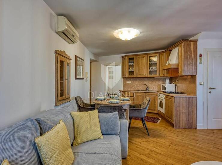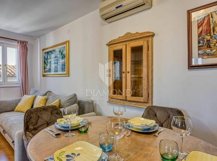 Posebna vrijednost stana je prekrasan pogled na more i crkvu sv. Eufemije, kao i mali vanjski prostor idealan za jutarnju kavu ili opuštanje na svježem zraku. Uz stan dolazi i vlastito spremište.