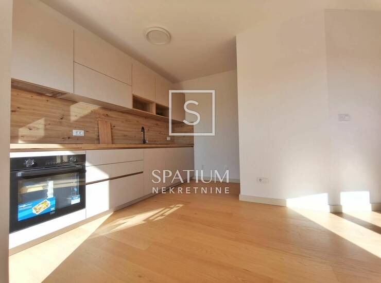 Prodaje se djelomično namješten - kuhinja i kupaonica, s kvalitetnom PVC stolarijom. Podovi su obloženi parketom. Grijanje i hlađenje riješeno je putem klima uređaja.