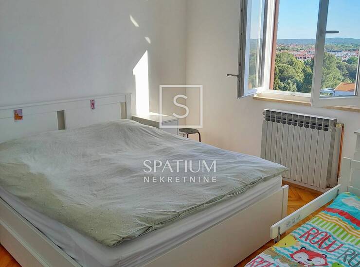 Stan se nalazi na četvrtom katu stambene zgrade. Smješten u mirnom, rezidencijalnom dijelu Rovinja. Ovo je stan izvrstan za obitelji s djecom obzirom da se radi o prostranom trosobnom stanu u blizini vrtića, škole, parkića za djecu, sportskih terena gdje se djeca mogu baviti sportom, ali osim toga ova lokacija je jedna od najpopularnijih za obiteljski život.