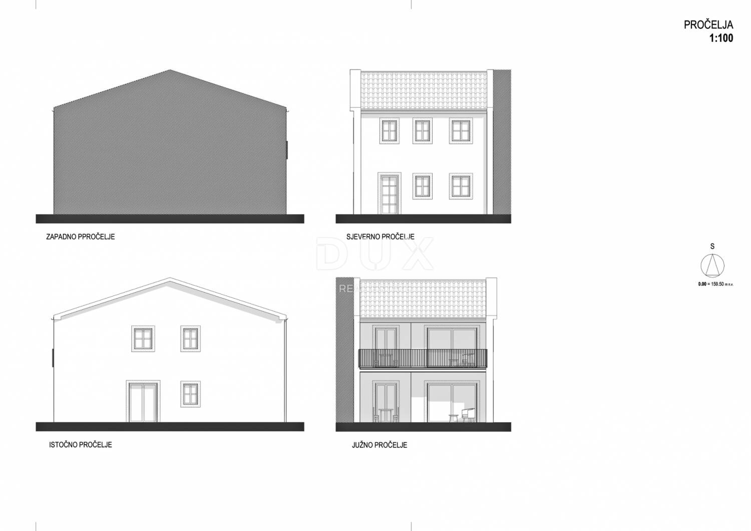 Poluugrađena obiteljska građevina bezvremenskog dizajna s dvije stambene jedinice se oblikovno i koloristički uklapa u naselje i krajolik i proteže se kroz prizemlje i prvi kat.