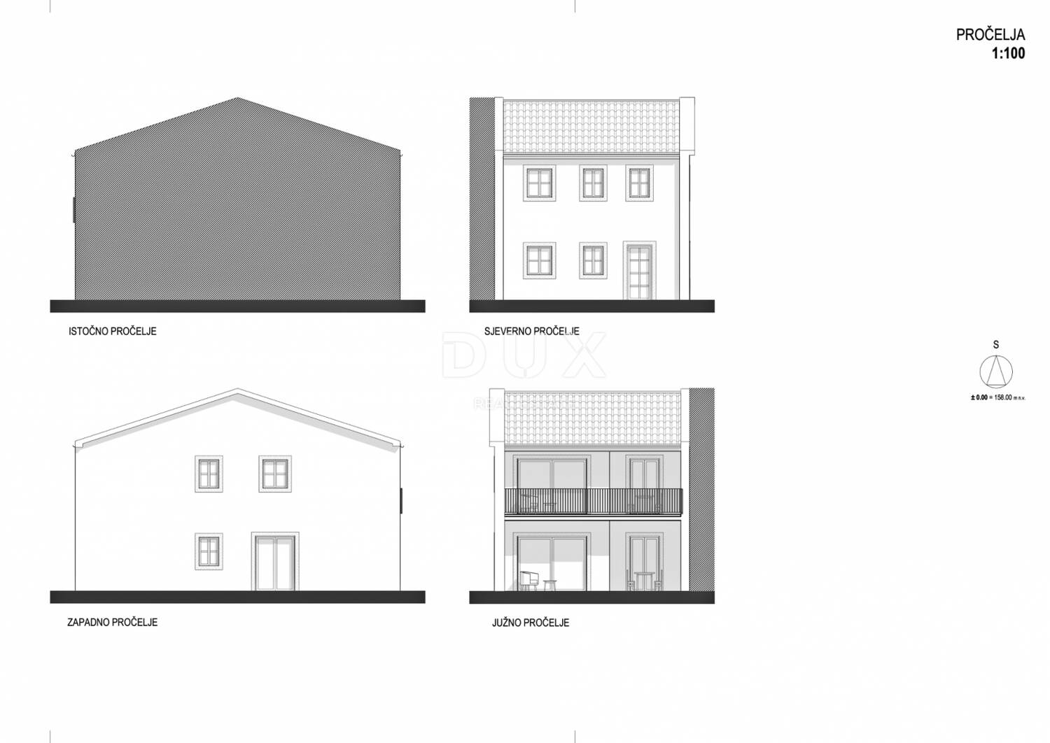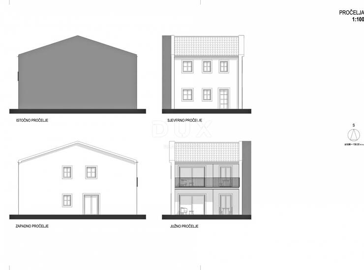 Poluugrađena obiteljska građevina bezvremenskog dizajna s dvije stambene jedinice se oblikovno i koloristički uklapa u naselje i krajolik i proteže se kroz prizemlje i prvi kat.
