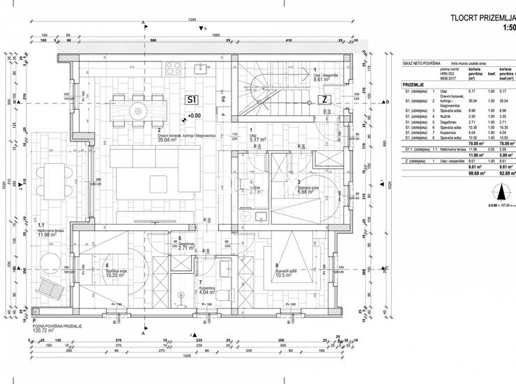 Neto kvadratura s obračunatim koeficijentima iznosi 84,08 m² dok neto kvadratura bez obračunatog koeficijenta iznosi 90,07 m² a uključuje stambeni dio površine 78,09 m² i natkrivenu terasu površine 11,98 m².