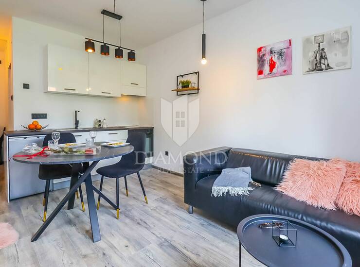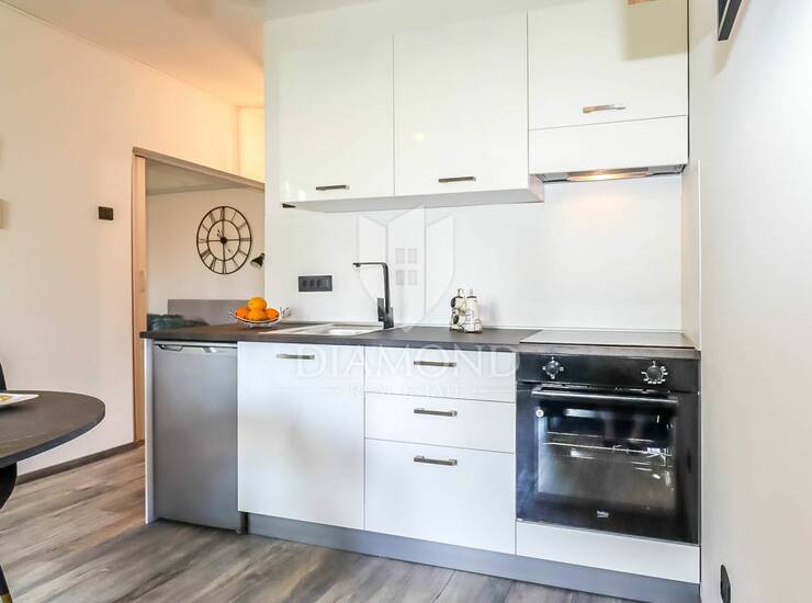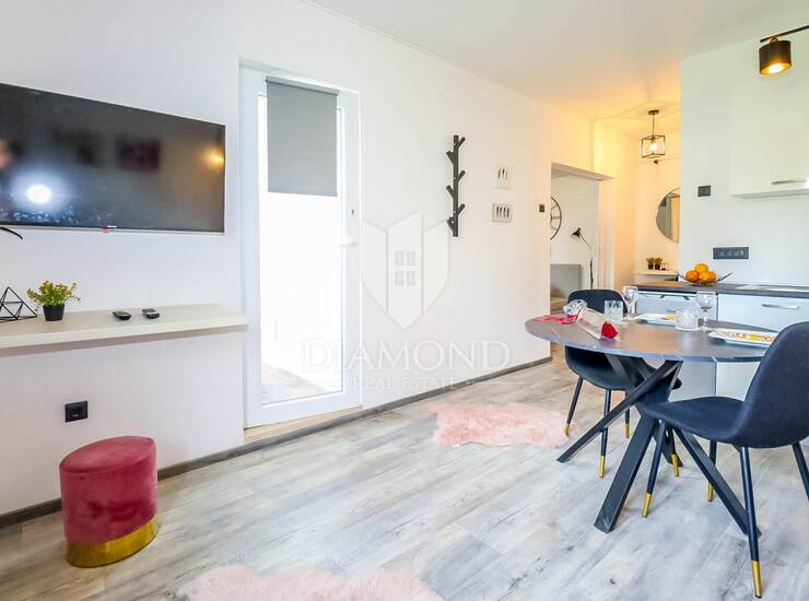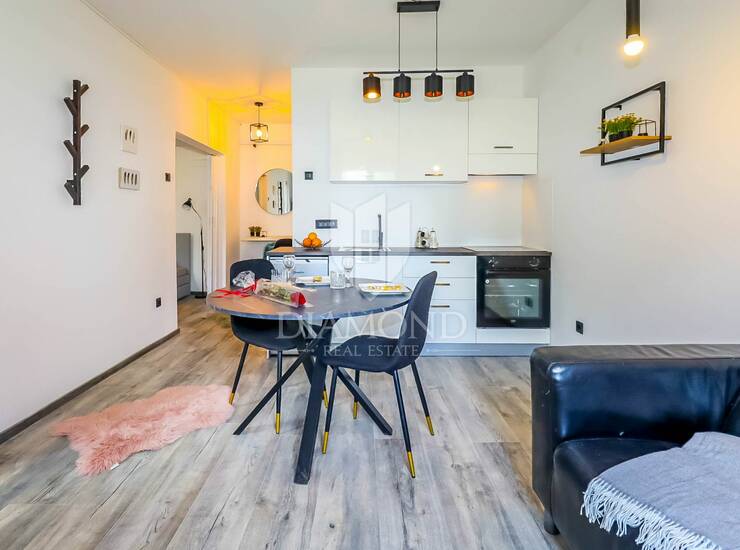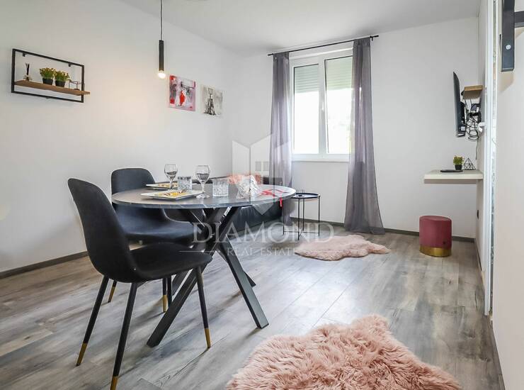 Upravo nedaleko od jezgre ovog divnog grada nalazi se stambena zgrada u kojoj se smjestio ovaj šarmantni stan. Ukupne površine od 34m2 sadrži sve što je potrebno za lagodan život. Sastoji se od manjeg ulaznog prostora ujedno i loggie, prostranijeg dnevnog boravka sa kuhinjom i blagovaonicom. U nastavku se nalazi kupaonica i spavaća soba.