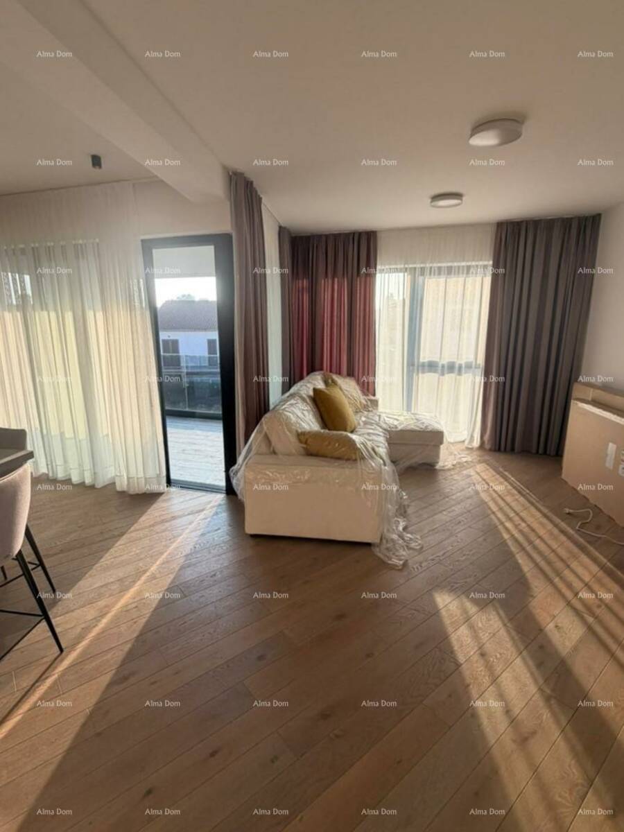 Stan je potpuno nov, namješten i nikad useljen. Neto površina stana iznosi 96,64 m², dodatni prostori 16,50 m² - ukupno 113,14m2, a ukupna obračunska površina (neto korisna) je 102,72 m².