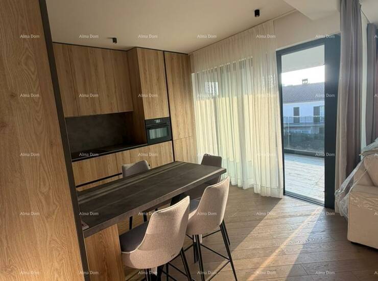 Stan se nalazi u elitnom dijelu Rovinja – Borik, u mirnoj ulici nekoliko minuta od mora, šetnica, parkinga i kafića. Smješten je u moderno projektiranoj zgradi sa samo šest stanova, liftom, privatnim parkirnim mjestom i spremištem u garaži. Hodnici su obloženi porculanskim pločicama, a zgrada ima individualne pristupne sustave.