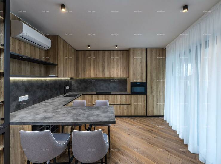 Stan je tehnički vrhunski opremljen: podno grijanje, dodatno grijanje i hlađenje putem fan-coil sustava, topla voda preko bojlera povezanih na toplinske pumpe Daikin, a svaki stan ima svoj depurator pitke vode. Podovi su prekriveni parketnom daskom od prirodnog drva.
