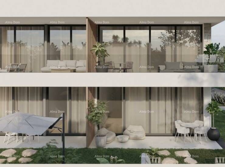 U mirnom mjestu u blizini Rovinja prodaje se stan u izgradnji, smješten u modernoj stambenoj zgradi koja nudi kvalitetno projektirane stanove s prostranim terasama i vlastitim vrtovima.