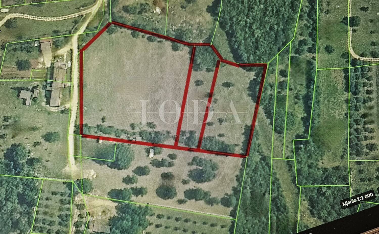Zemljište se sastoji od 3 katastarske čestice koje tvore jednu cjelinu.