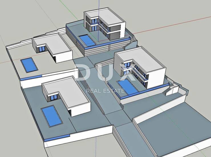 Zemljište pravokutnog oblika koje se sastoji od devet međusobno povezanih katastarskih čestica pogodno je za izgradnju minimalno šest slobodnostojećih građevina a ima izrađen idejni projekt za četiri stambene zgrade s jednom stambenom jedinicom i vlasti